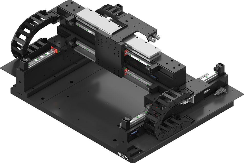 The systems are always used when, in addition to high absolute and repeat accuracy (in the ±0.5 µm to ±2 µm range), the straightest possible movement (straightness and flatness in the 5 - 50 µm/ 300 mm range) is required. For instance, in high-precision inspection systems, laser micro-machining, high-speed placement place machines or large-format dispensing or parts testing. “We design our precision systems in a type of modular system”, explains Werner Mäurer, Managing Director of HIWIN GmbH. “Standardisation saves our customers time and money for engineering work and still gives them a wide range of options and customer-specific adaptations”.